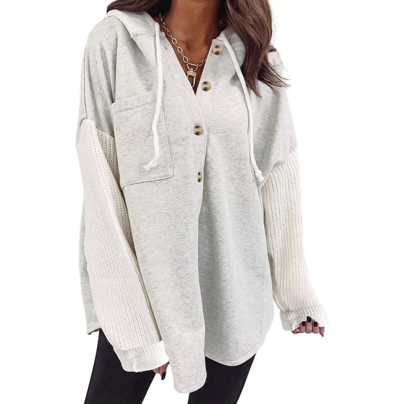 Oversized Sweatshirt for Women Loose Fit Casual Long Sleeve Button Hooded Sweatshirts Hoodies with Pocket