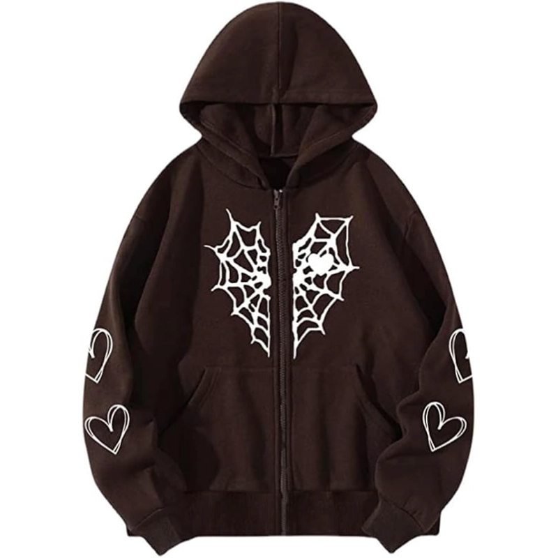 Oversized Y2K Zip Up Hoodie for Women Men Gothic Spider Web Heart Graphic Sweatshirt Punk Harajuku Alt Emo