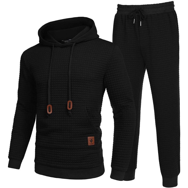 Men’s Tracksuit 2 Piece Hoodie Sweatsuit Sets Casual Athletic Jogging Suits Waffle Plaid Jacquard Outfits