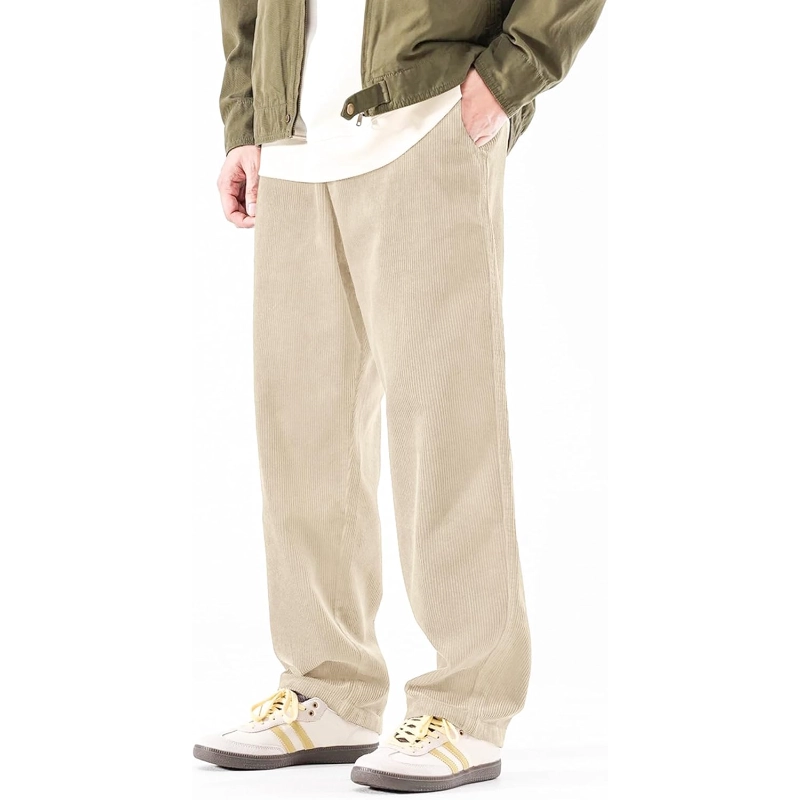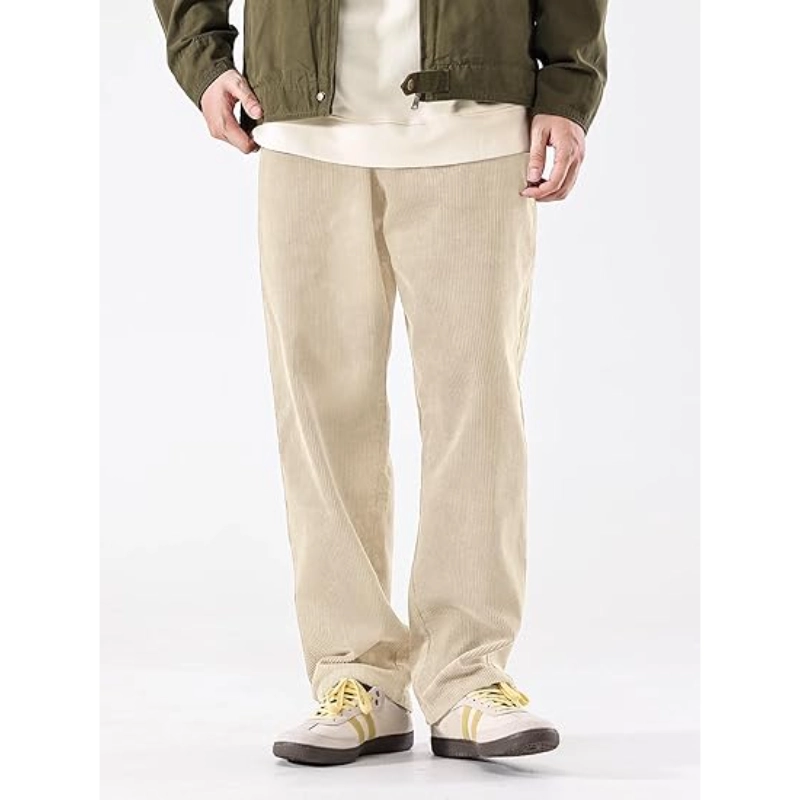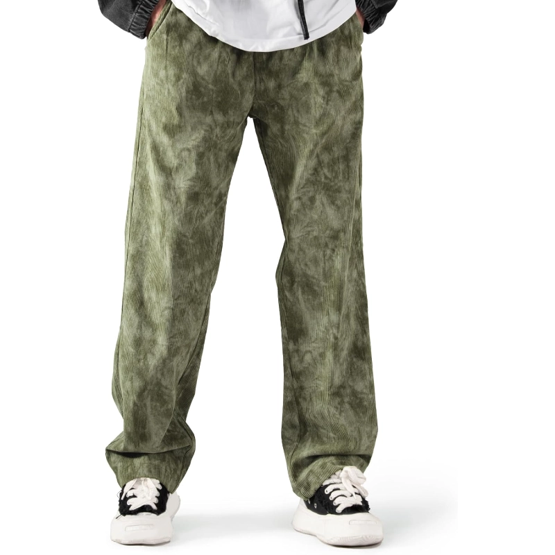 Mens Corduroy Casual Pants Warm Straight Leg Loose Fit with Pockets Drawstring Elastic Waist Vintage Sweatpants Baggy