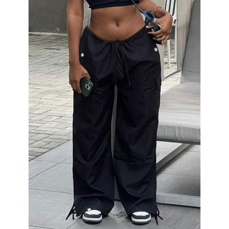 Design Features: High-waisted silhouette to flatter curves; oversized baggy fit with wide legs for a cool, effortless look; functional cargo details add a utilitarian edge.