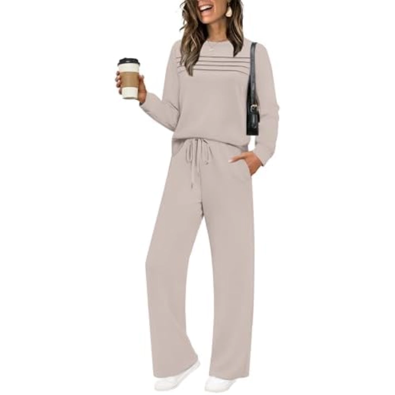 • Features: Crewneck/Adorable Pleated Front tops. Elastic waist pants/ drawstring pants/ wide leg sweatpants and Equipped with convenient pockets