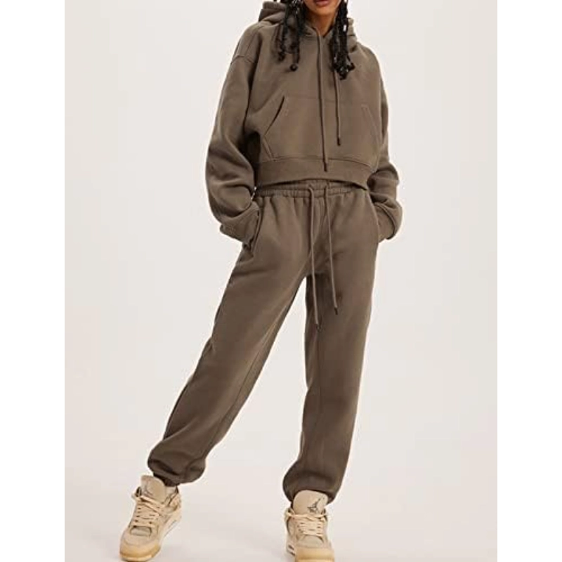 Women Fleece 2 Piece Tracksuits Fall Winter Sweatshirt Jogger Pants Matching Lounge Sets Thick Sweatsuits Pockets